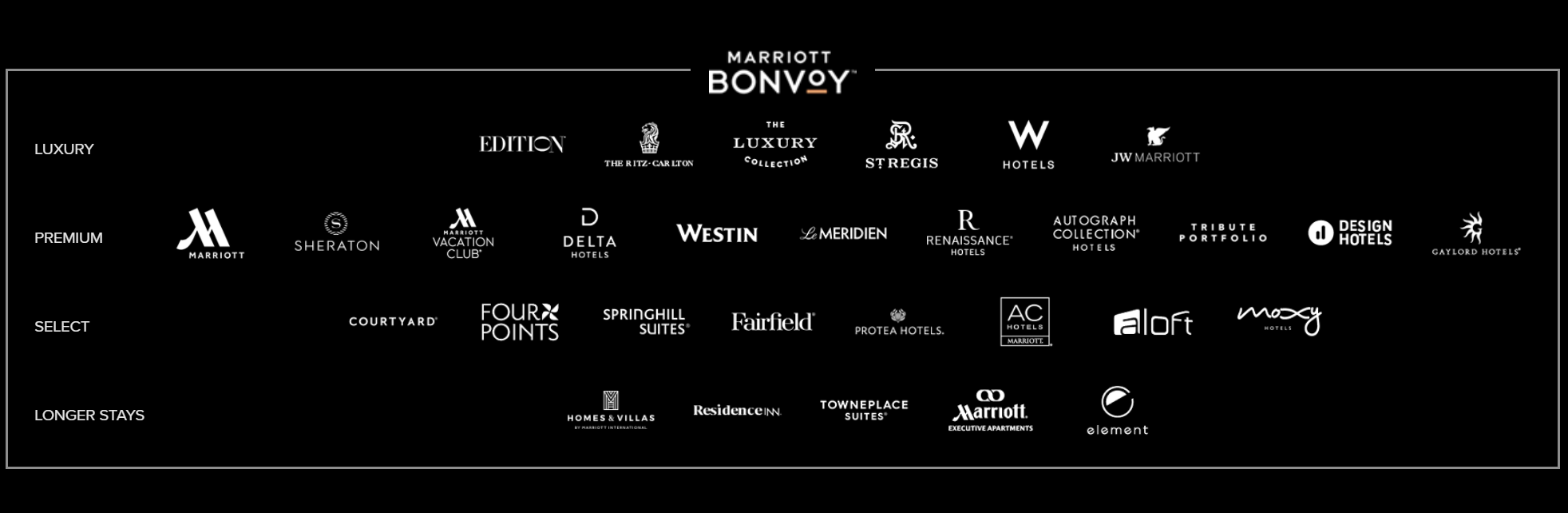 호텔이 정말 많네요. 스타우드랑 인수합병하면서 2배로 불어났습니다. 너무 많아서 인지도 있는 브랜드들만 일단 소개해볼게요.