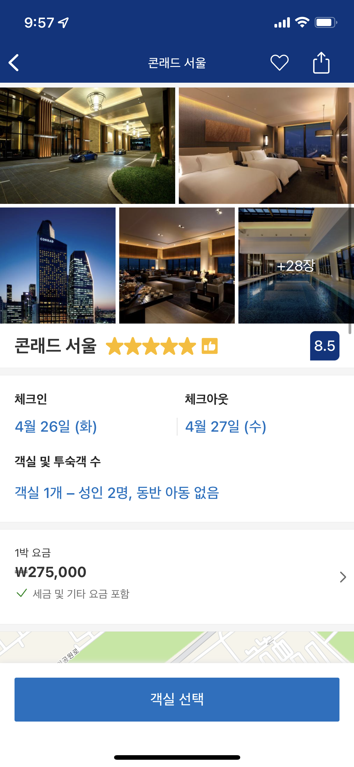 포시즌스보다는 조금 더 브랜드가 낮은 힐튼의 콘래드가 약 28만원입니다.