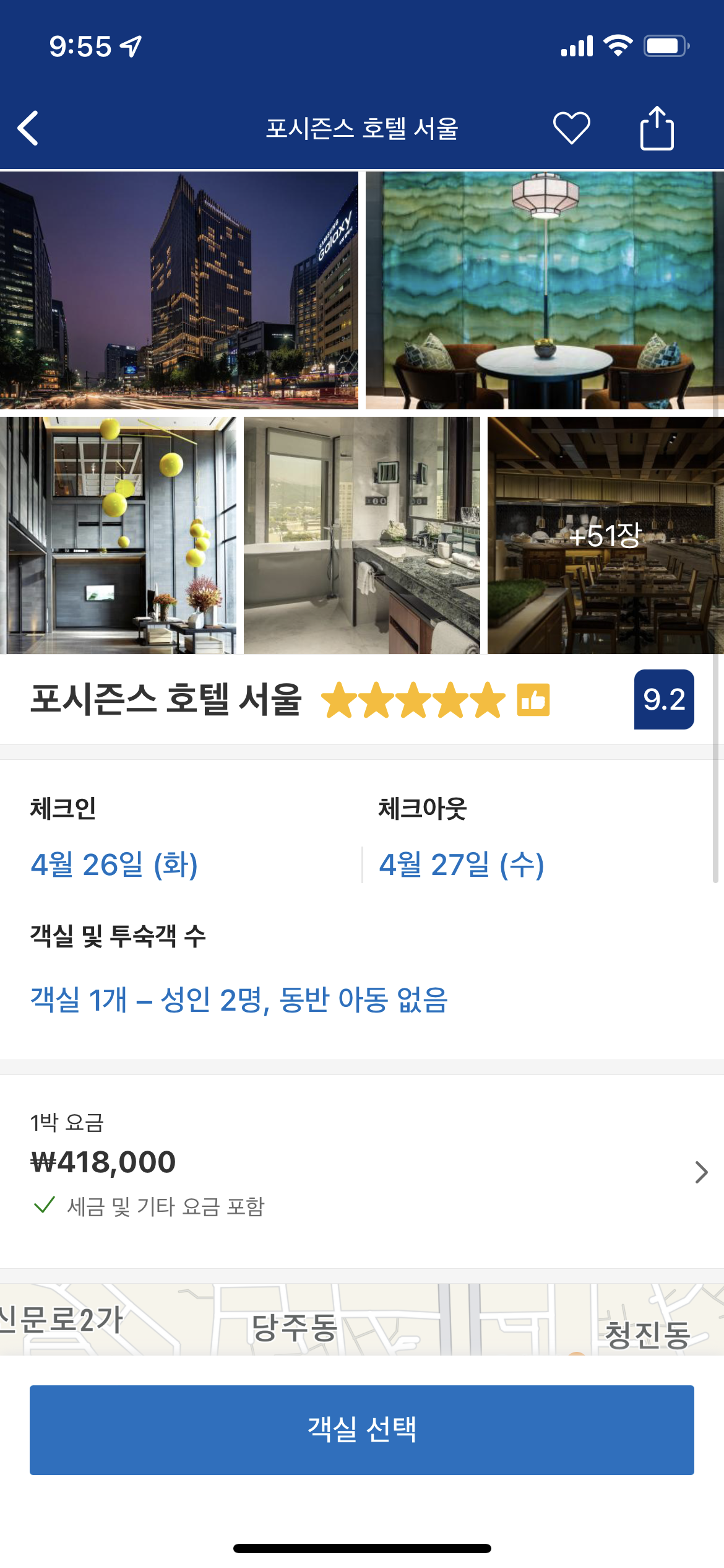 한국에 있는 호텔 중 가장 높은 등급의 브랜드를 가진 포시즌스가 약 42만원이고요,
