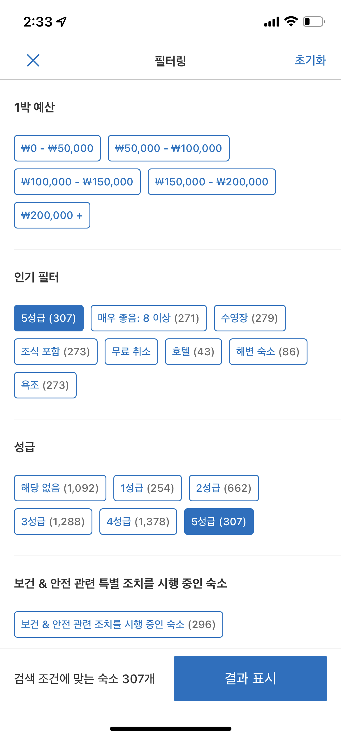 헉! 5성급이 307개나 되네요? 물론 이 중에서 반은 짭 5성(에어 비앤비나 5성이 절대 아닌데 5성으로 표기 등등)일겁니다…