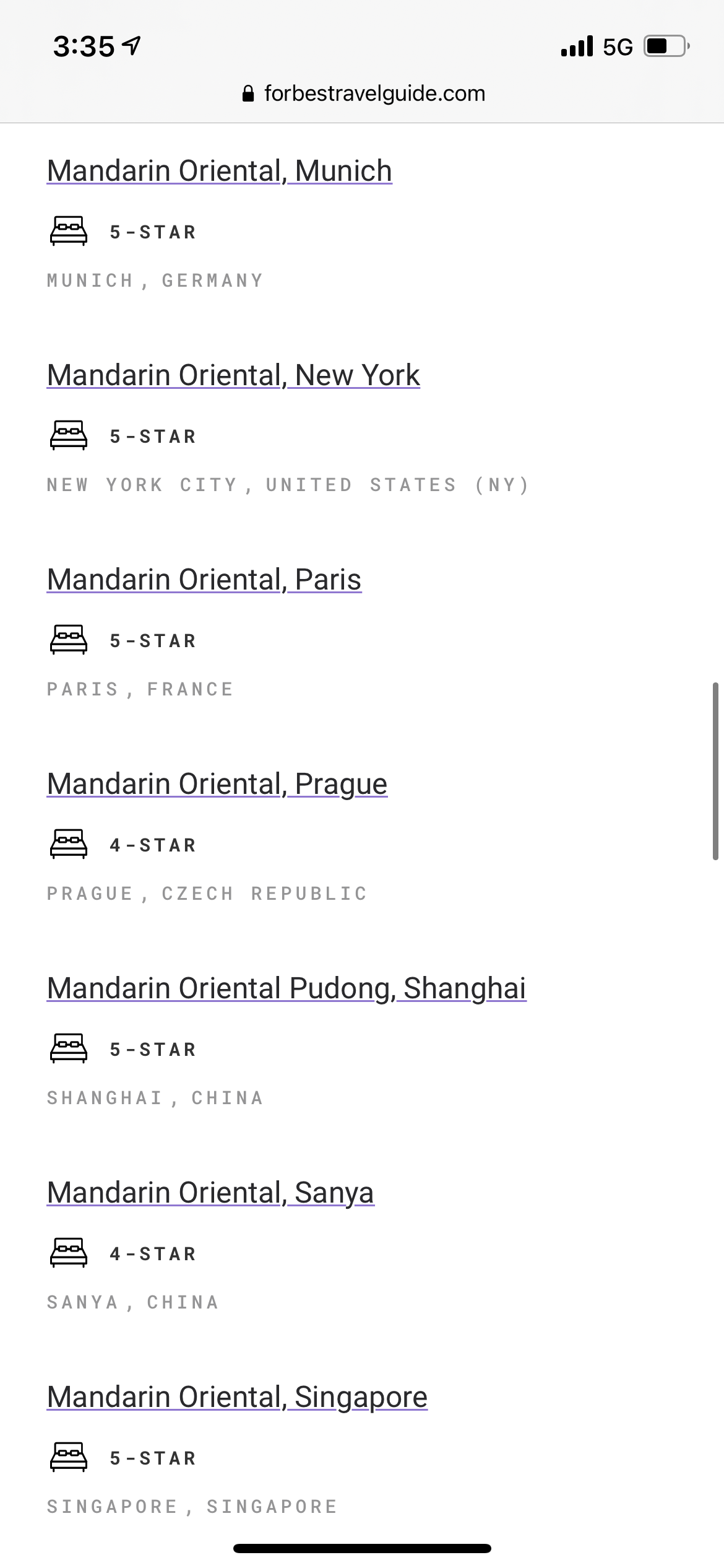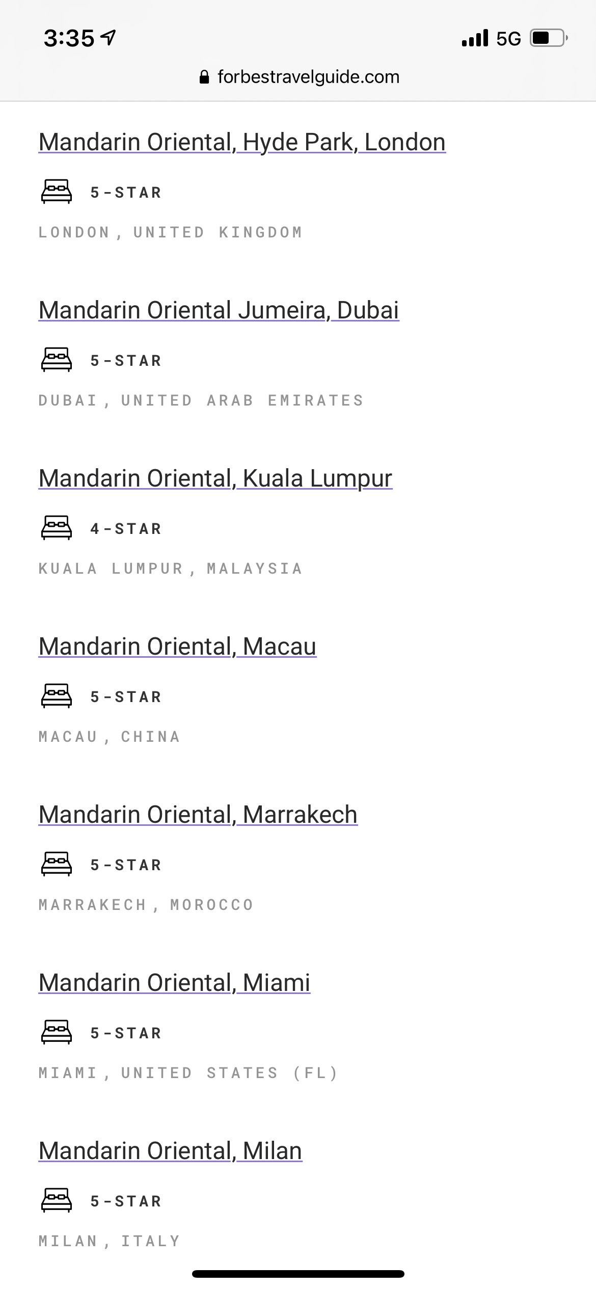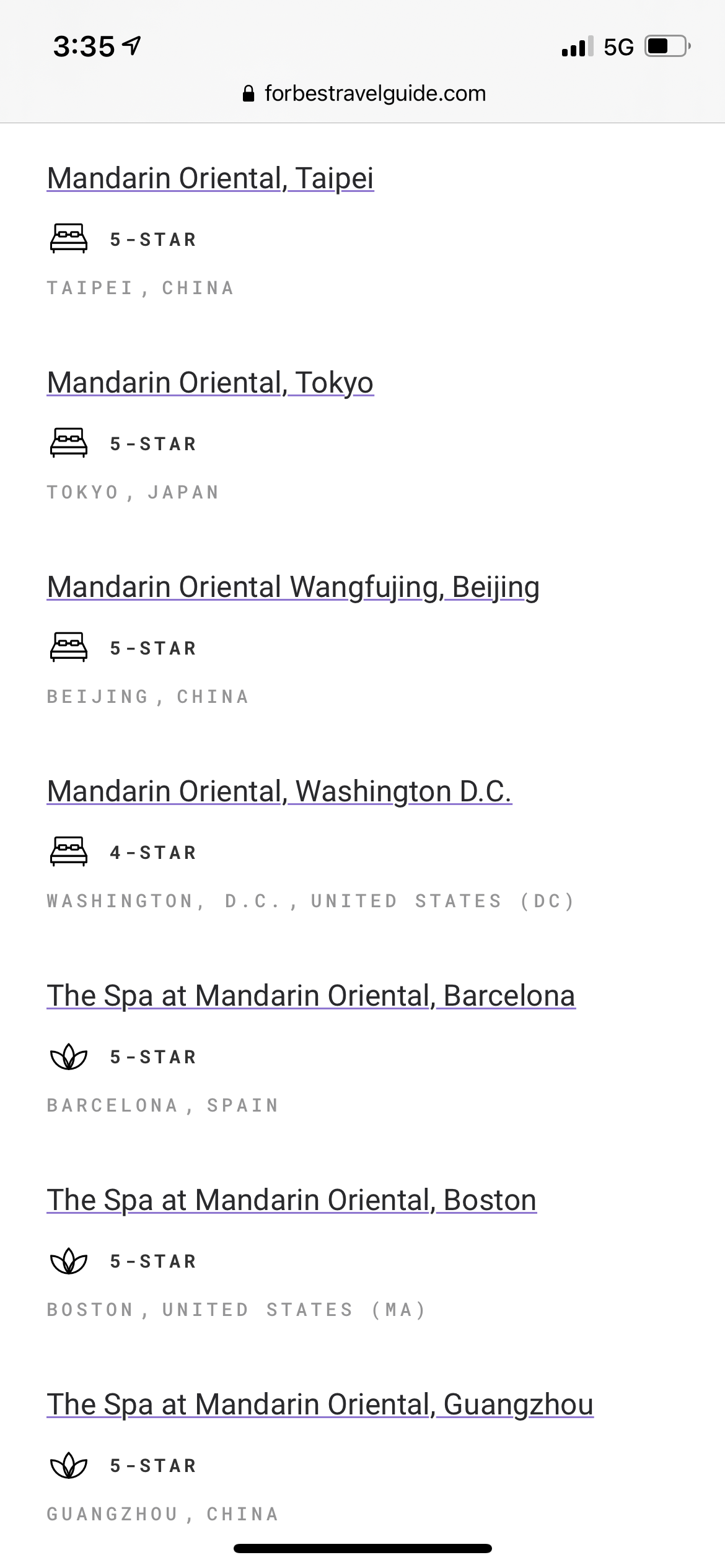 대단하다! 만다린 오리엔탈! 모든 호텔이 별이 있고 포브스 5성이 4성보다 많다!